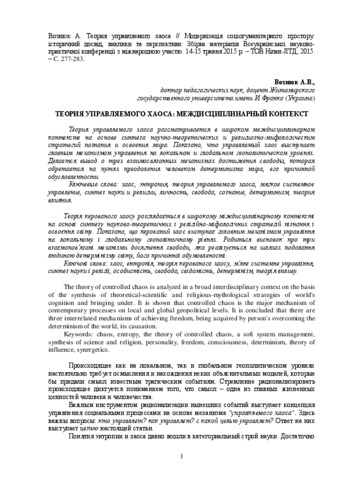 Вознюк О. В. (2015) Теория управляемого хаоса. In: Всеукраїнської науково-практичної конференції з міжнародною участю. 14-15 травня 2015 р.. С. 277–283.