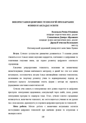 Васильєва Р. Ю., Степанчиков Д. А., Дорош В. В. (2024) Використання цифрових технологій при навчанні фізики в закладах освіти. In: XII International Scientific and Practical Conference “Current challenges of science and education”, 29-31 July 2024, Berlin, Germany. С. 189–193.