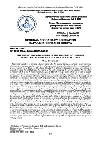 Гордієнко О. А. (2025) The Use of Didactic Games in the Process of Forming Monological Speech of Young Schoolchildren. Вісник Житомирського державного університету імені Івана Франка. Педагогічні науки. № 120. С. 20–28. ISSN 2663-6387. DOI: 10.35433/pedagogy.1(120).2025.2.
