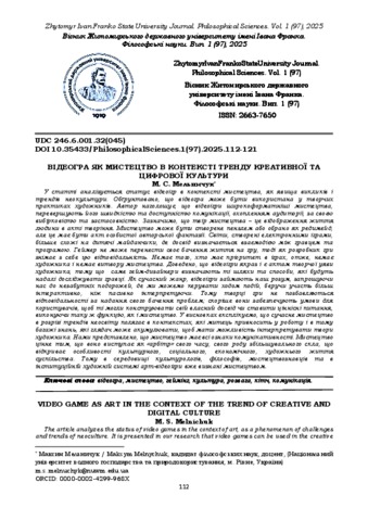 Мельничук М. С. (2025) Відеогра як мистецтво в контексті тренду креативної та цифрової культури. Вісник Житомирського державного університету імені Івана Франка. Філософські науки. № 97. С. 112–121. ISSN 2663-7650.