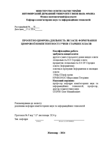 Проєктно-цифрова діяльність як засіб формування цифрової компетентності учнів старших класів.