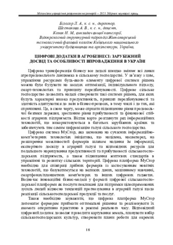 Цифрові додатки в агробізнесі: зарубіжний досвід та особливості впровадження в Україні.