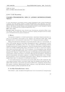 Ключові слова: бiгiперболiчнi числа, дiльники нуля, iдемпотенти, розкладення Пiрса, вимiрний простiр, сигма-алгебра подiй, вiдношення часткового порядку, бiгiперболiчнозначна ймовiрнiсть, бiгiперболiчнозначна умовна ймовiрнiсть.