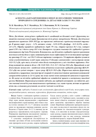 Аспекти адаптації пшениці озимої до негативних чинників природного середовища за дії засобів захисту рослин.