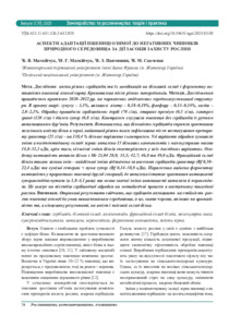 Мета. Дослідити вплив різних гербіцидів та їх комбінацій на білковий склад і ферментну активність пшениці озимої сорту Кришталева після різних попередників. Методи. Дослідження проводились протягом 2020–2022 рр. на чорноземах опідзолених середньосуглинкової структури. В орному шарі: гумусу – 3,1%, валового азоту – 0,18–0,19%, фосфору – 0,13–0,14%, калію – 2,0–2,1%. Обробку проводили гербіцидами: дербі (70 г/га), старане преміум (0,5 л/га), лонтрел гранд (120 г/га) і діален супер (0,8 л/га). Контролем слугувала пшениця без гербіцидів із ручним виполюванням бур’янів. Результати. Встановлено, що більшість гербіцидів сприяли зростанню загального вмісту білка в зерні, найвищий рівень якого зафіксовано після застосування препарату гранстар (25 г/га) – на 138,4 % більше порівняно з контролем. Усі варіанти обробки зумовили зміни в поліпептидному складі зерна: виявлено 15 білкових компонентів з молекулярною масою 14,8–51,3 кДа, крім того, кількісні зміни білків спостерігались у всіх дослідних варіантах. Особливу активність виявили білки з Mr 23,04 28,9; 35,5; 42,7; 46,8 та 49,0 кДа. Фракційний склад білків також зазнав змін – найбільші зміни відзначено за внесення гербіцидів гранстар (Rf 0,50– 22,4 кДа) та суміші естерон + пума супер (Rf 0,14–58,9 кДа). Паралельно оцінено ферментну активність у проростках пшениці другої генерації, де виявлено істотне зростання активності супероксиддисмутази (в 1,8–4,1 раза) та менш значні зміни активності каталази й пероксидази. Це вказує на післядію гербіцидної обробки на метаболічні процеси в наступному поколінні рослин. Висновки. Отримані результати свідчать, що гербіциди впливають на стійкість рос- лин пшениці озимої до умов навколишнього середовища, а це, своєю чергою, впливає на врожайність та, в кінцевому результаті, на вміст і якісний склад білка.