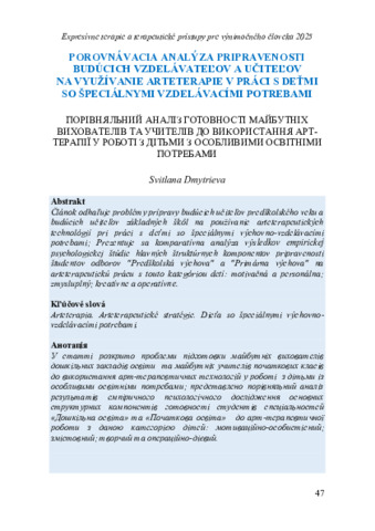 Порівняльний аналіз готовності майбутніх вихователів та учителів до використання арт-терапії у роботі з дітьми з особливими освітніми потребами.