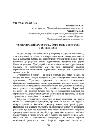 In: ІV Всеукраїнська науково-практична Інтернет-конференція «Туризм: міжнародний досвід та національні пріоритети», 2 травня 2025 р., Житомир.