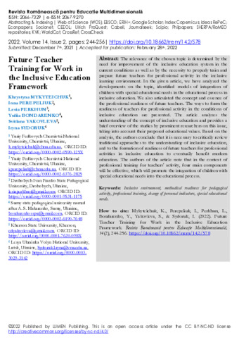 Revista Românească pentru Educaţie Multidimensională. Т. 14, № 2.
