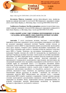 Соціальний захист внутрішньо переміщених осіб як складова державної соціальної політики України: законодавчі засади.