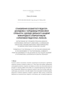 Становлення особистості педагога-дослідника у середовищі професійної спільноти: з досвіду діяльності Академії міжнародного співробітництва з креативної педагогіки «Полісся».
