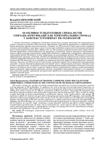 Особливості підготовки спеціалістів з питань комунікації для територіальних громад у контексті розвитку PR-технологій
