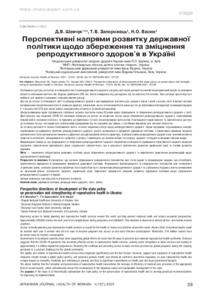 Перспективні напрями розвитку державної політики щодо збереження та зміцнення репродуктивного здоров’я в Україні.