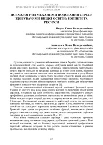 Психологічні механізми подолання стресу здобувачами вищої освіти: копінги та ресурси.