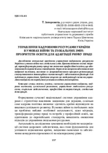 Управління кадровими ресурсами України в умовах війни та глобальних змін: пріоритети освіти для адаптації ринку праці.