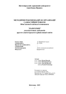 Методичні рекомендації до організації самостійної роботи з обов’язкової освітньої компоненти «Нанохімія» для підготовки здобувачів другого (магістерського) рівня вищої освіти.