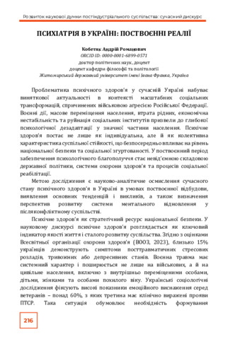 Психіатрія в Україні: поствоєнні реалії.