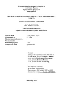 Інструктивно-методичні матеріали до лабораторних занять із обов’язкової освітньої компоненти «Загальна хімія»: навчально-методичний посібник для підготовки здобувачів першого (бакалаврського) рівня вищої освіти.