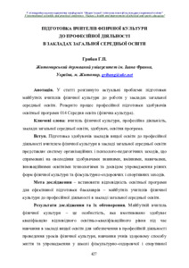 Підготовка вчителів фізичної культури до професійної діяльності в закладах загальної середньої освіти.