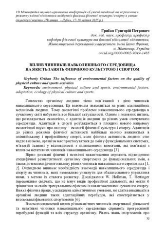In: VІI Міжнародна науково-практична конференція «Сучасні тенденції та перспективи розвитку якісної підготовки майбутніх фахівців фізичної культури і спорту в умовах ступеневої освіти», 17–18 квітня 2025 р., Полтава – Лубни.