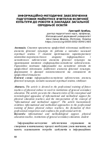 Інформаційно-методичне забезпечення підготовки майбутніх вчителів фізичної культури до роботи в закладах загальної середньої освіти.