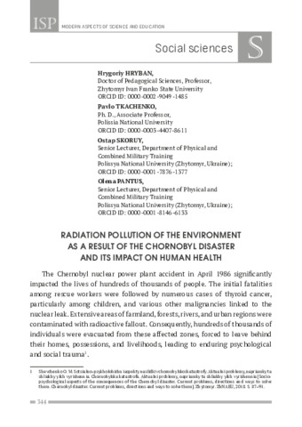 Radiation Pollution of the Environment as a Result of the Chornobyl Disaster and Its Impact on Human Health.