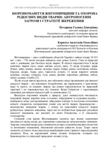 Біорізноманіття Житомирщини та охорона рідкісних видів тварин: антропогенні загрози і стратегії збереження.