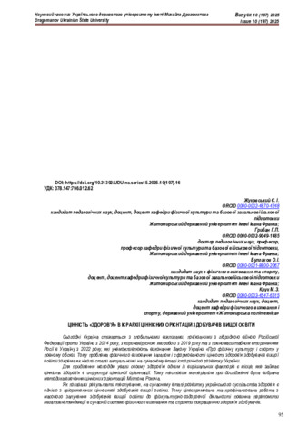 Цінність «здоров’я» в ієрархії ціннісних орієнтацій здобувачів вищої освіти.