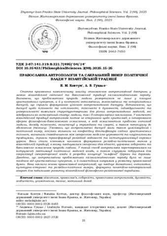 Православна антропологія та сакральний вимір політичної влади у візантійській традиції.