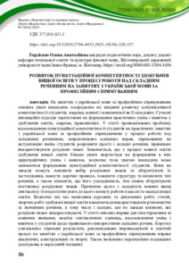 Розвиток пунктуаційної компетентності здобувачів вищої освіти у процесі роботи над складним реченням на заняттях з української мови за професійним спрямуванням.