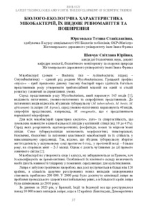 Юрковська Т. С., Шевчук С. Ю.ORCID: https://orcid.org/0000-0001-6374-1859 (2025) Біолого-екологічна характеристика мікобактерій, їх видове різноманіття та поширення. In: X Міжнародна науково-практична конференція «Latest technologies and youth: the development of scientific trends», 3–5 листопада 2025 р., Прага, Чехія. С. 37–39.