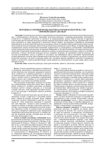 Шостачук Т. В.ORCID: https://orcid.org/0000-0002-4542-2835 (2025) Потенціал і ризики польської педагогіки культури на тлі європейського досвіду. Науковий вісник Ужгородського університету. Серія: «Педагогіка. Соціальна робота». № 57. С. 220–224. ISSN 2524-0609. DOI: 10.24144/2524-0609.2025.57.220-224.