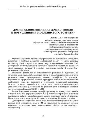 Дослідження мислення дошкільників із порушеннями мовленнєвого розвитку.