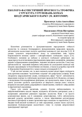 Еколого-фауністичний прогноз та трофічна структура угруповань комах Шодуарівського парку (м. Житомир)