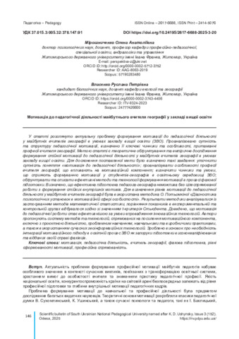 Мотивація до педагогічної діяльності майбутнього вчителя географії у закладі вищої освіти.