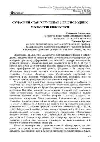 Сучасний стан угруповань прісноводних молюсків річки Случ.