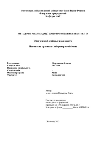 Методичні рекомендації щодо проходження практики із обов’язкової освітньої компоненти «Навчальна практика (лабораторно-хімічна)».