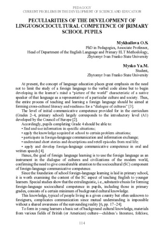 Peculiarities of the development of linguosociocultural competence of primary school pupils.