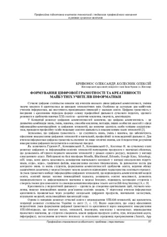 Формування цифрової грамотності та креативності майбутніх учителів інформатики.