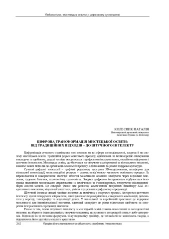 Цифрова трансформація мистецької освіти: від традиційних підходів – до штучного інтелекту.