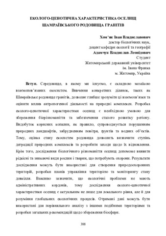 Еколого-ценотична характеристика оселищ Шамраївського родовища гранітів.