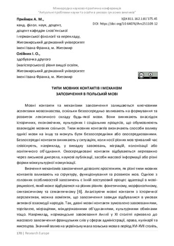 Типи мовних контактів і механізм запозичення в польській мові.
