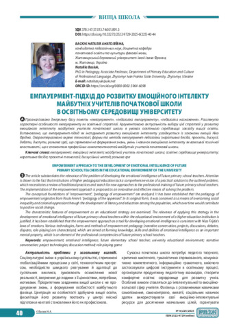 Емпауермент-підхід до розвитку емоційного інтелекту майбутніх учителів початкової школи в освітньому середовищі університету.