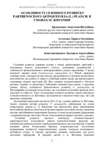 Особливості сезонного розвитку Parthenocissus Quinquefolia (L.) Planch. в умовах м. Житомир.