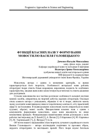 Функції власних назв у формуванні мовостилю Василя Головецького.