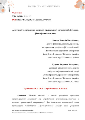 Аскетизм і усамітнення у контексті православної антропології: історико-філософський контекст.