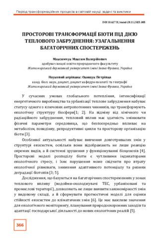 Максимчук М. В. (2025) Просторові трансформації біоти під дією теплового забруднення: узагальнення багаторічних спостережень. In: VI Міжнародна наукова конференція «Інноваційна наука: пошук відповідей на виклики сучасності», 28 листопада 2025 р., Полтава. С. 366–369. DOI: 10.62731/mcnd-28.11.2025.005.