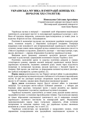 Українська музика в еміграції (кінець ХХ – початок ХХІ століття).
