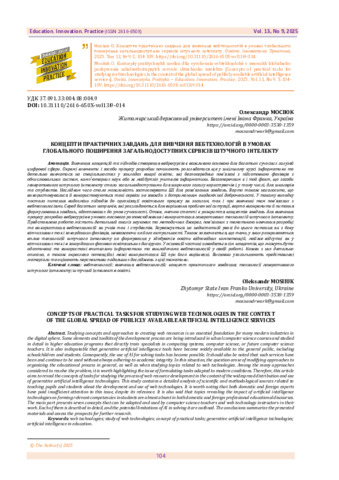 Ключові слова: вебтехнології; вивчення вебтехнологій; концепт практичного завдання; технології генеративного штучного інтелекту; штучний інтелект в освіт