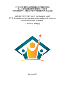 Папіжук В. О., Лісова Ю. О., Климович Ю. Ю. (ред.). (2025) Сучасні філологічні дослідження та навчання іноземної мови в контексті міжкультурної комунікації: Збірник студентських наукових робіт. Житомирський державний університет імені Івана Франка.
