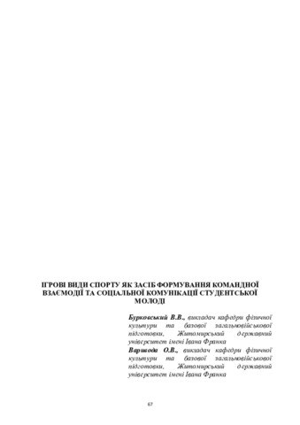 Ігрові види спорту як засіб формування командної взаємодії та соціальної комунікації студентської молоді.